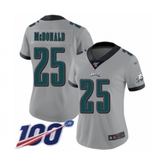 Women's Philadelphia Eagles #25 Tommy McDonald Limited Silver Inverted Legend 100th Season Football Jersey