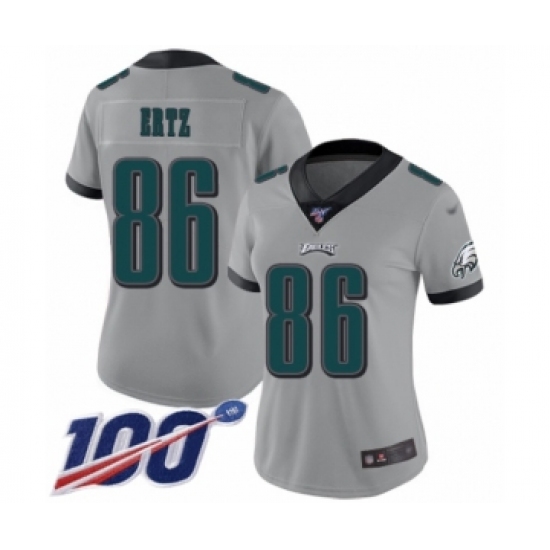 Women's Philadelphia Eagles #86 Zach Ertz Limited Silver Inverted Legend 100th Season Football Jersey