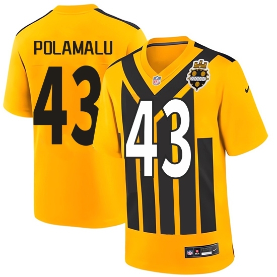 Women's Pittsburgh Steelers #43 Troy Polamalu Gold 1933 Throwback Alternate Football Stitched Game Jersey