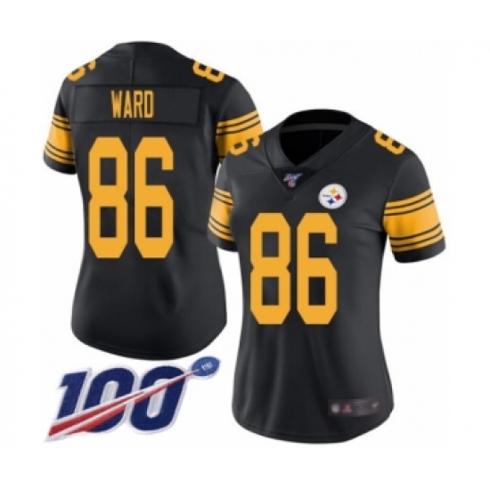 >Women's Pittsburgh Steelers #86 Hines Ward Limited Black Rush Vapor Untouchable 100th Season Football Jersey