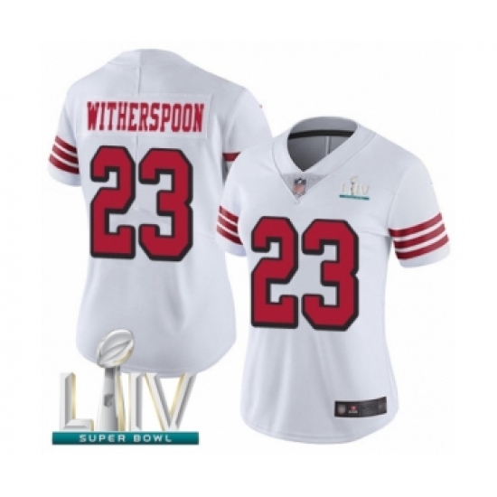 Women's San Francisco 49ers #23 Ahkello Witherspoon Limited White Rush Vapor Untouchable Super Bowl LIV Bound Football Jersey