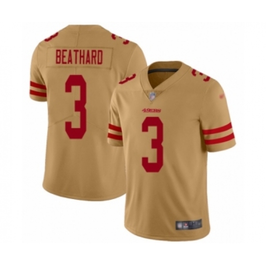 >Women's San Francisco 49ers #3 C. J. Beathard Limited Gold Inverted Legend Football Jersey