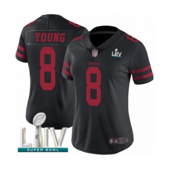 >Women's San Francisco 49ers #8 Steve Young Black Vapor Untouchable Limited Player Super Bowl LIV Bound Football Jersey