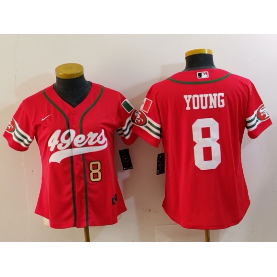 Women's San Francisco 49ers #8 Steve Young Red Mexico Cool Base Stitched Baseball Jerseys