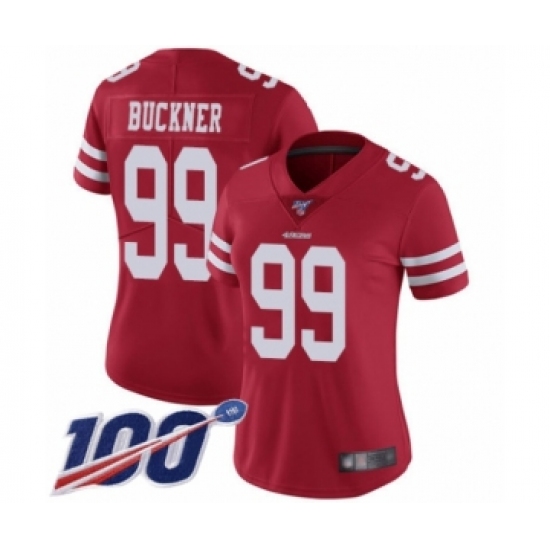 Women's San Francisco 49ers #99 DeForest Buckner Red Team Color Vapor Untouchable Limited Player 100th Season Football Jersey