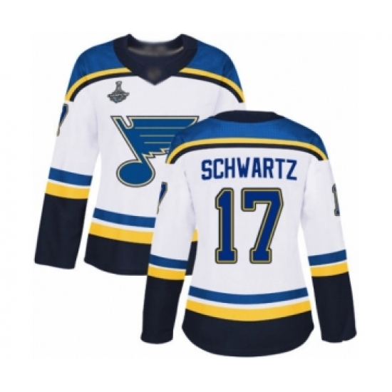Women's St. Louis Blues #17 Jaden Schwartz Authentic White Away 2019 Stanley Cup Champions Hockey Jersey