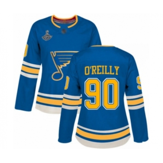 >Women's St. Louis Blues #90 Ryan O'Reilly Authentic Navy Blue Alternate 2019 Stanley Cup Champions Hockey Jersey