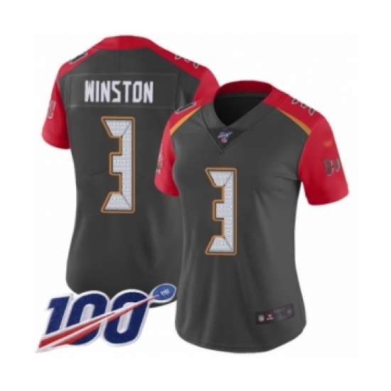 Women's Tampa Bay Buccaneers #3 Jameis Winston Limited Gray Inverted Legend 100th Season Football Jersey