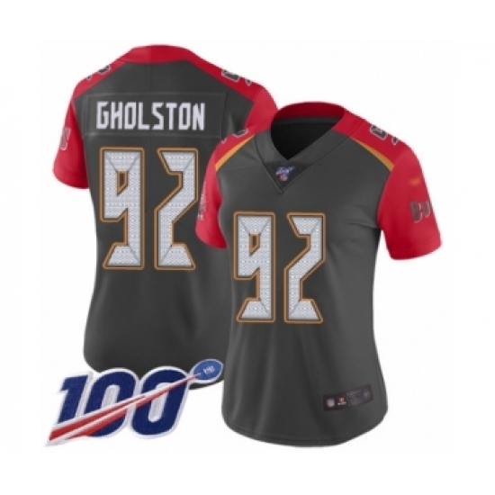 >Women's Tampa Bay Buccaneers #92 William Gholston Limited Gray Inverted Legend 100th Season Football Jersey