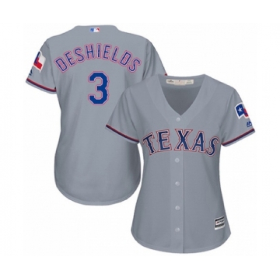 Women's Texas Rangers #3 Delino DeShields Jr. Authentic Grey Road Cool Base Baseball Player Jersey