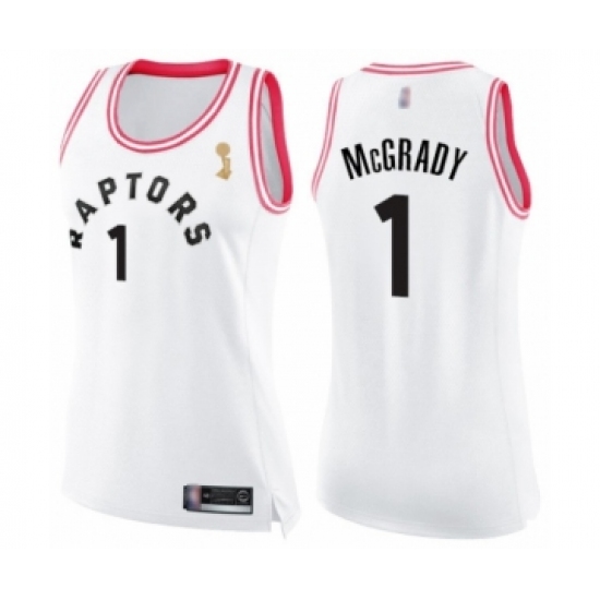 Women's Toronto Raptors #1 Tracy Mcgrady Swingman White Pink Fashion 2019 Basketball Finals Champions Jersey
