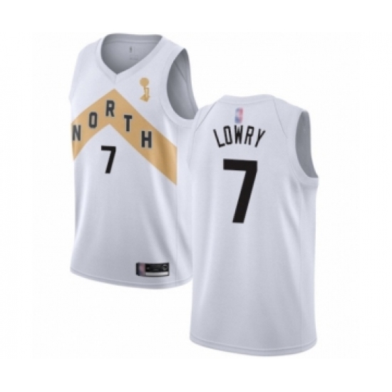 >Women's Toronto Raptors #7 Kyle Lowry Swingman White 2019 Basketball Finals Champions Jersey - City Edition