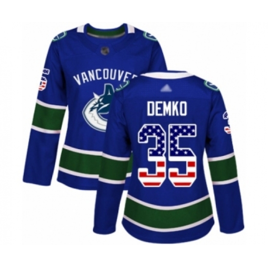 Women's Vancouver Canucks #35 Thatcher Demko Authentic Blue USA Flag Fashion Hockey Jersey