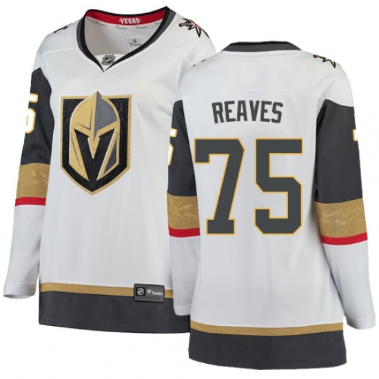 >Women's Vegas Golden Knights #75 Ryan Reaves Authentic White Away Fanatics Branded Breakaway NHL Jersey