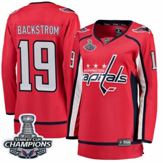 >Women's Washington Capitals #19 Nicklas Backstrom Fanatics Branded Red Home Breakaway 2018 Stanley Cup Final Champions NHL Jersey