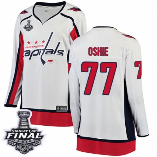 Women's Washington Capitals #77 T.J. Oshie Fanatics Branded White Away Breakaway 2018 Stanley Cup Final NHL Jersey