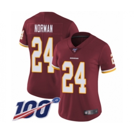 Women's Washington Redskins #24 Josh Norman Burgundy Red Team Color Vapor Untouchable Limited Player 100th Season Football Jersey