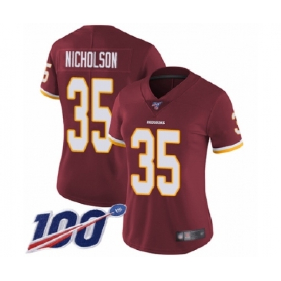 >Women's Washington Redskins #35 Montae Nicholson Burgundy Red Team Color Vapor Untouchable Limited Player 100th Season Football Jersey