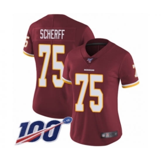 Women's Washington Redskins #75 Brandon Scherff Burgundy Red Team Color Vapor Untouchable Limited Player 100th Season Football Jersey