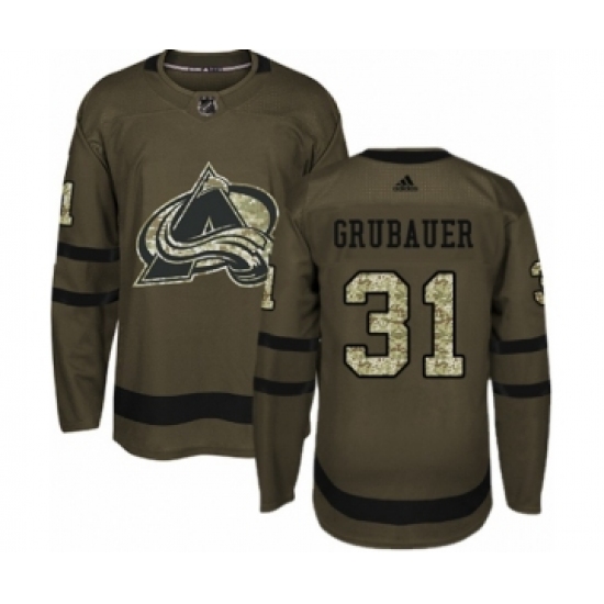 Women's Adidas Colorado Avalanche #31 Philipp Grubauer Authentic Green Salute to Service NHL Jersey