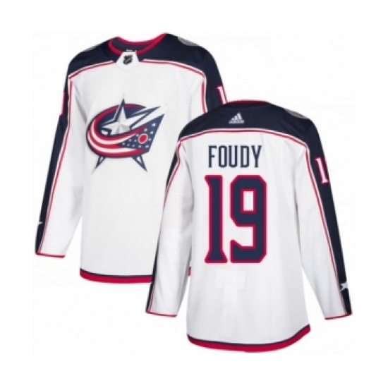Women's Columbus Blue Jackets #19 Liam Foudy Authentic White Away Fanatics Branded Breakaway NHL Jersey