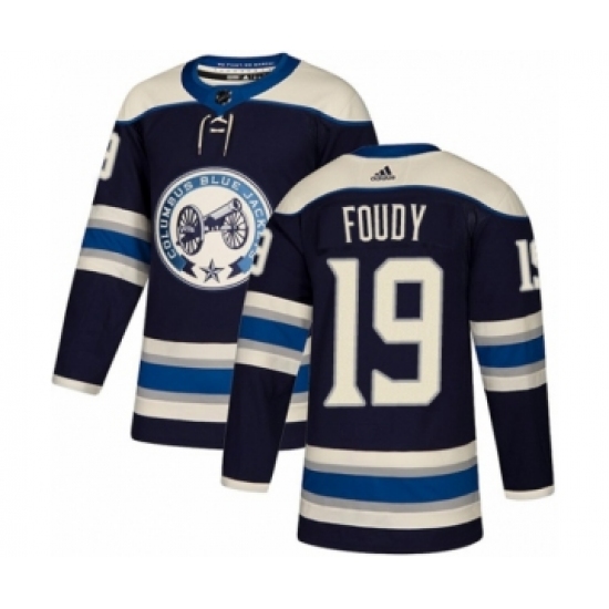>Youth Adidas Columbus Blue Jackets #19 Liam Foudy Premier Navy Blue Alternate NHL Jersey