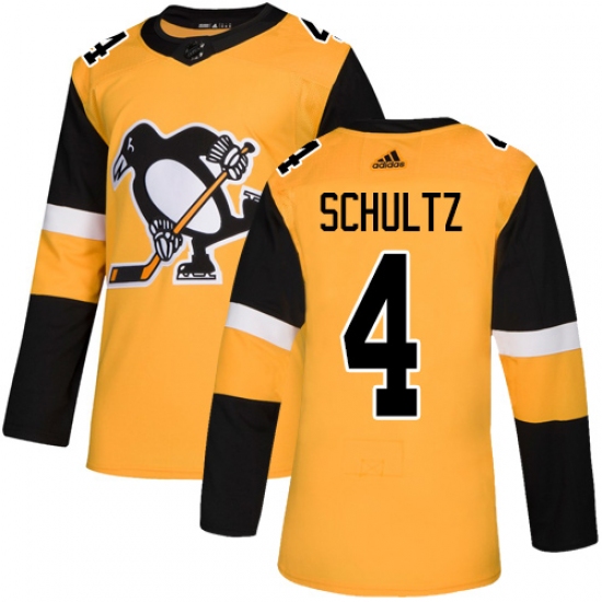 >Youth Adidas Pittsburgh Penguins #4 Justin Schultz Authentic Gold Alternate NHL Jersey