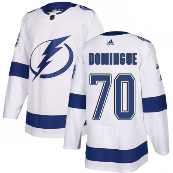 >Youth Adidas Tampa Bay Lightning #70 Louis Domingue Authentic White Away NHL Jersey