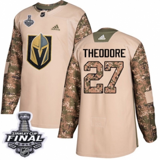 Youth Adidas Vegas Golden Knights #27 Shea Theodore Authentic Camo Veterans Day Practice 2018 Stanley Cup Final NHL Jersey
