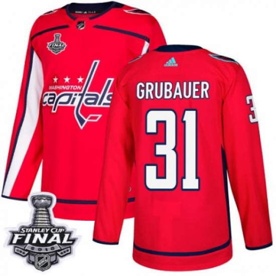>Youth Adidas Washington Capitals #31 Philipp Grubauer Authentic Red Home 2018 Stanley Cup Final NHL Jersey