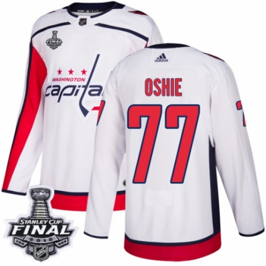 >Youth Adidas Washington Capitals #77 T.J. Oshie Authentic White Away 2018 Stanley Cup Final NHL Jersey