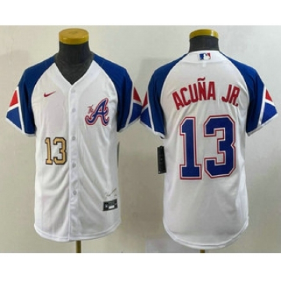 Youth Atlanta Braves #13 Ronald Acuna Jr Number White 2023 City Connect Cool Base Stitched Jersey