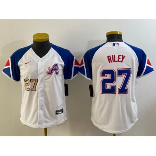 Youth Atlanta Braves #27 Austin Riley White 2023 City Connect Cool Base Stitched Jersey