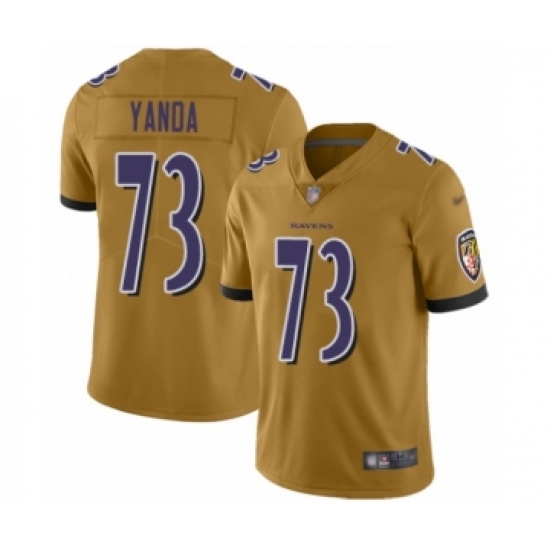 Men's Baltimore Ravens #73 Marshal Yanda Limited Gold Inverted Legend 100th Season Football Jersey