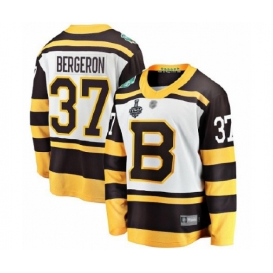 >Youth Boston Bruins #37 Patrice Bergeron White Winter Classic Fanatics Branded Breakaway 2019 Stanley Cup Final Bound Hockey Jersey