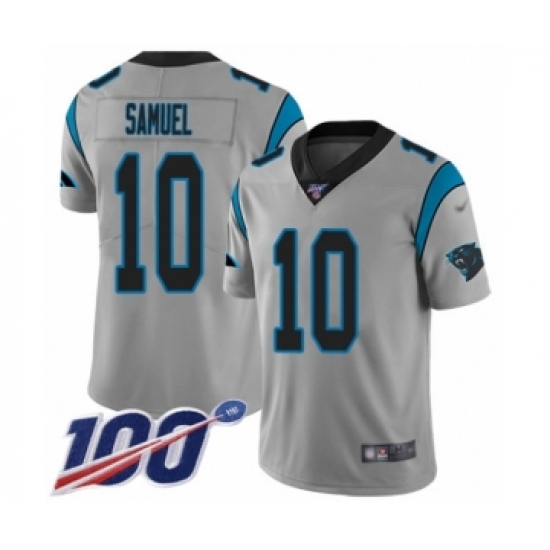 >Youth Carolina Panthers #10 Curtis Samuel Silver Inverted Legend Limited 100th Season Football Jersey