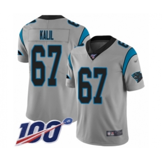 >Youth Carolina Panthers #67 Ryan Kalil Silver Inverted Legend Limited 100th Season Football Jersey