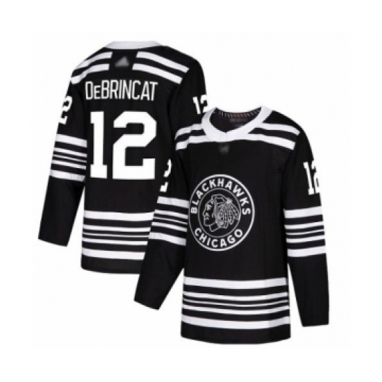 Men's Adidas Chicago Blackhawks #12 Alex DeBrincat Authentic Black 1917-2017 100th Anniversary NHL Jersey
