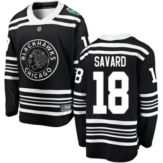 >Youth Chicago Blackhawks #18 Denis Savard Black 2019 Winter Classic Fanatics Branded Breakaway NHL Jersey