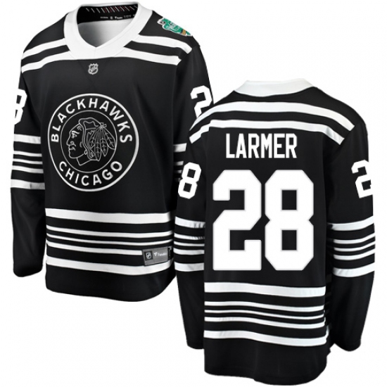 >Youth Chicago Blackhawks #28 Steve Larmer Black 2019 Winter Classic Fanatics Branded Breakaway NHL Jersey