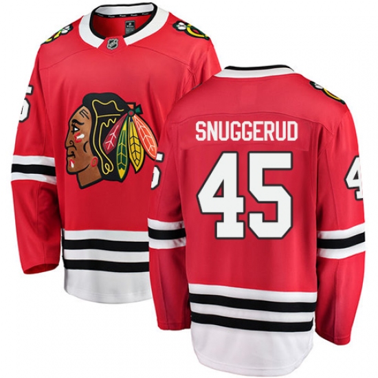 Home>NHL>Chicago Blackhawks>Luc Snuggerud>Youth Chicago Blackhawks #45 Luc Snuggerud Fanatics Branded Red Home Breakaway NHL Jersey