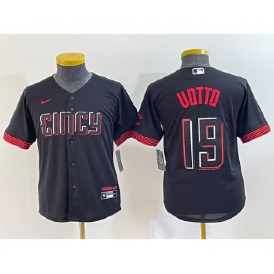 >Youth Cincinnati Reds #19 Joey Votto Black 2023 City Connect Cool Base Stitched Jersey
