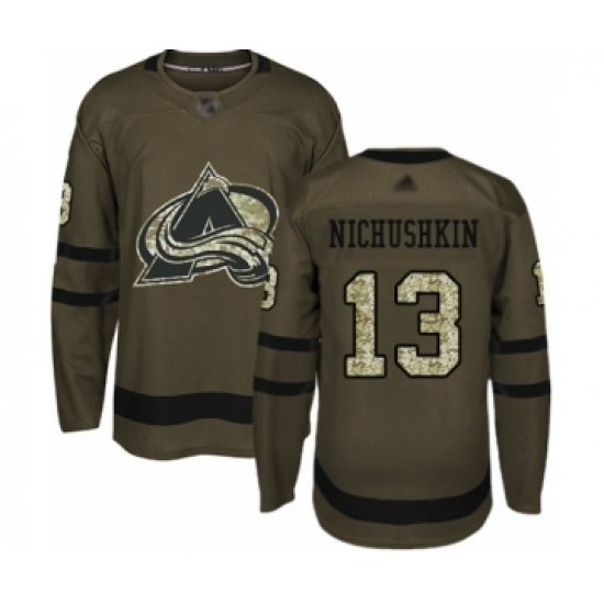 Youth Colorado Avalanche #13 Valeri Nichushkin Authentic Green Salute to Service Hockey Jersey