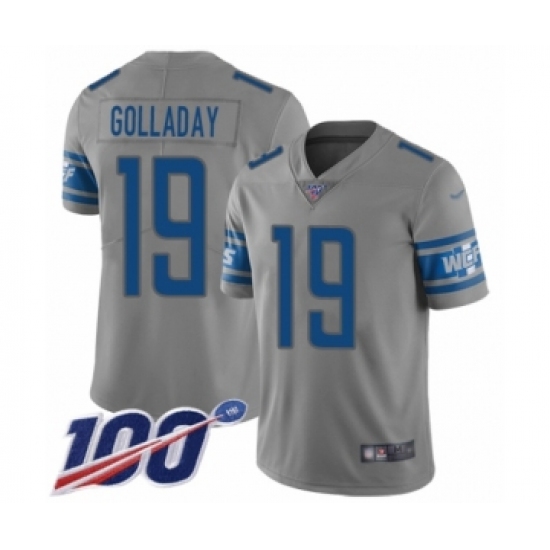 >Youth Detroit Lions #19 Kenny Golladay Limited Gray Inverted Legend 100th Season Football Jersey
