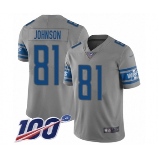 >Youth Detroit Lions #81 Calvin Johnson Limited Gray Inverted Legend 100th Season Football Jersey