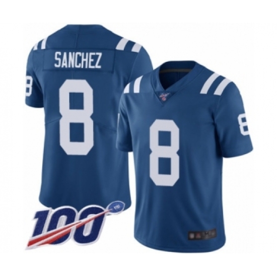Youth Indianapolis Colts #8 Rigoberto Sanchez Royal Blue Team Color Vapor Untouchable Limited Player 100th Season Football Jersey