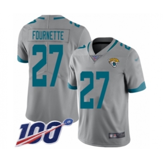 >Youth Jacksonville Jaguars #27 Leonard Fournette Silver Inverted Legend Limited 100th Season Football Jersey