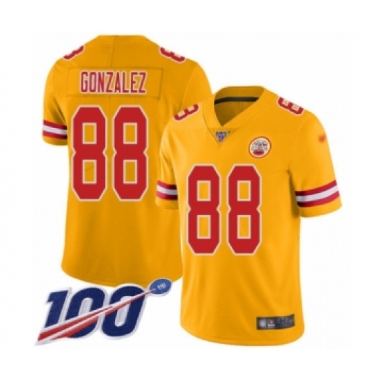>Youth Kansas City Chiefs #88 Tony Gonzalez Limited Gold Inverted Legend 100th Season Football Jersey