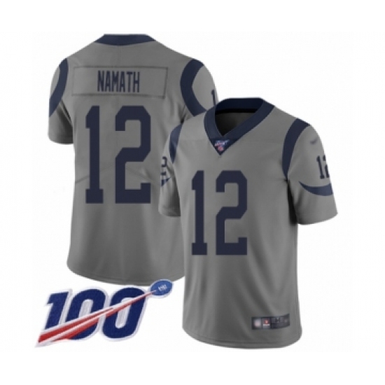 >Youth Los Angeles Rams #12 Joe Namath Limited Gray Inverted Legend 100th Season Football Jersey