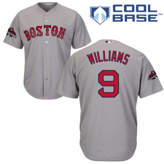 Youth Majestic Boston Red Sox #9 Ted Williams Authentic Grey Road Cool Base 2018 World Series Champions MLB Jersey